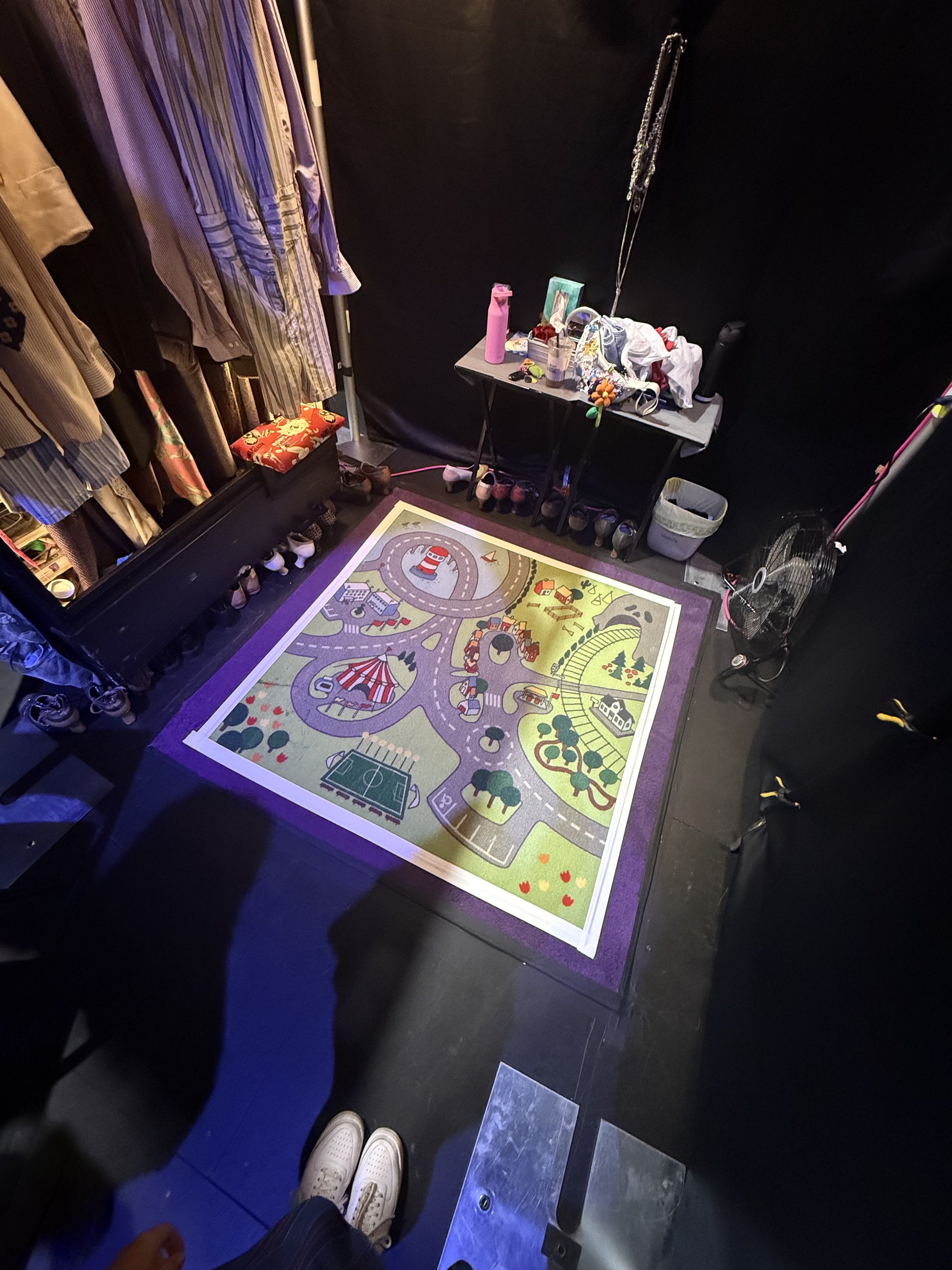 Image above shows the Quick Change booth that I work out of during each performance. My team was very open to the idea of brightening up the space with a fun carpet!